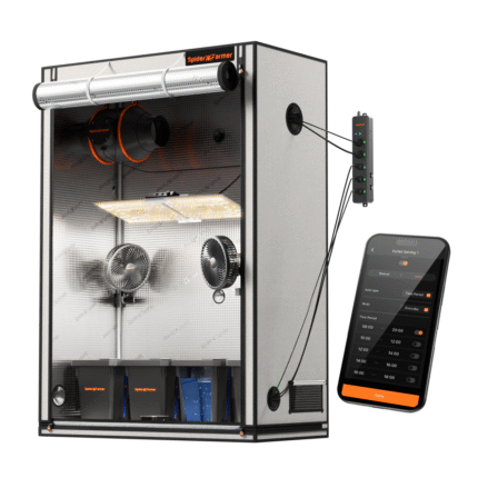 Spider Farmer 4’x4’x6.5′ Complete Grow Tent Kit I SE5000 EVO 480W LED Grow Light I 6″ Inline Fan with GGS Controller Kits I Clip Fan