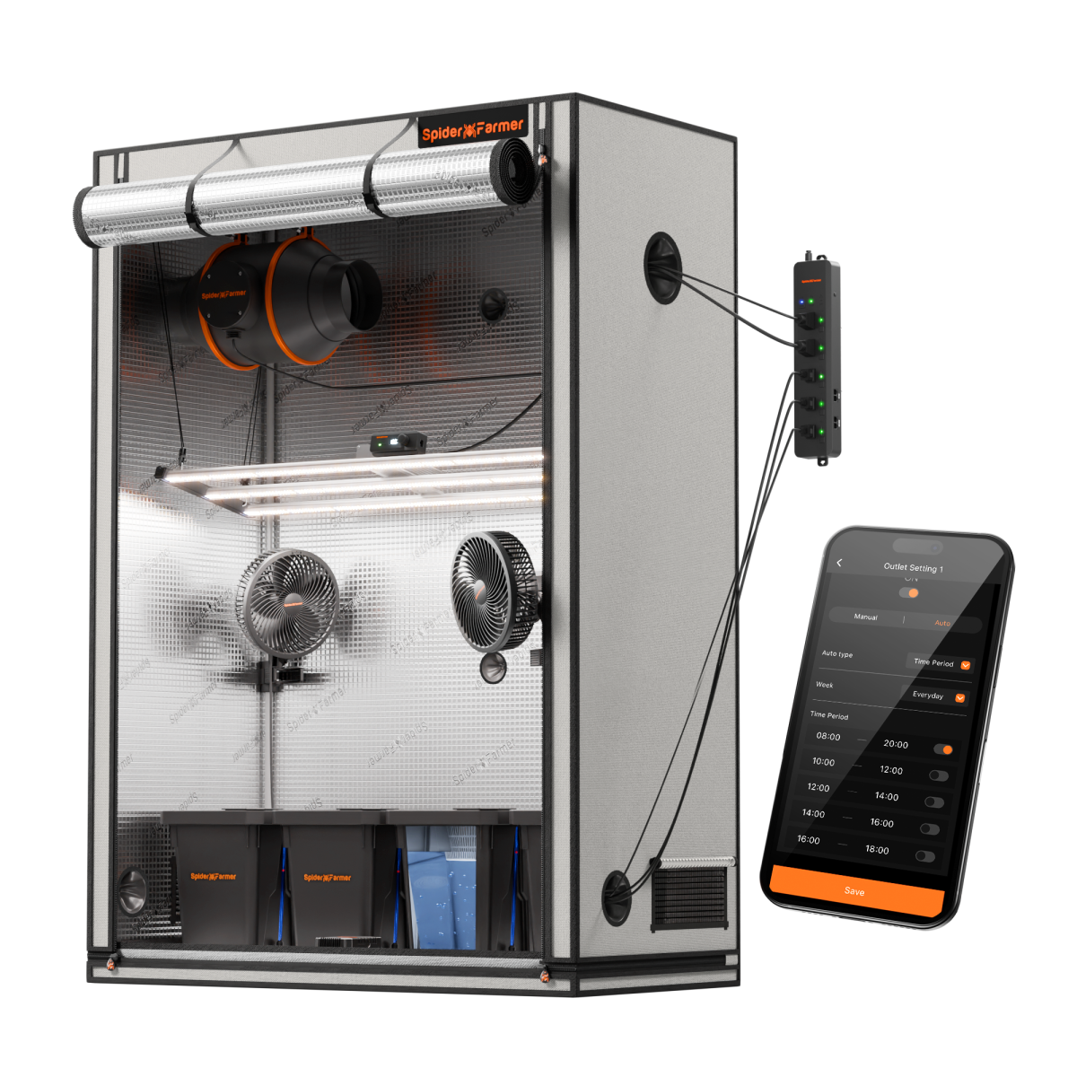Spider Farmer Smart Grow Tent Kit 5′x5′x6.5′ for 9–12 Plants with App Control via Bluetooth & Wi-Fi – Automated LED Lighting, Ventilation & Drip Irrigation | G7000 730W, Sensors, GGS Controller & AC5 Power Strip